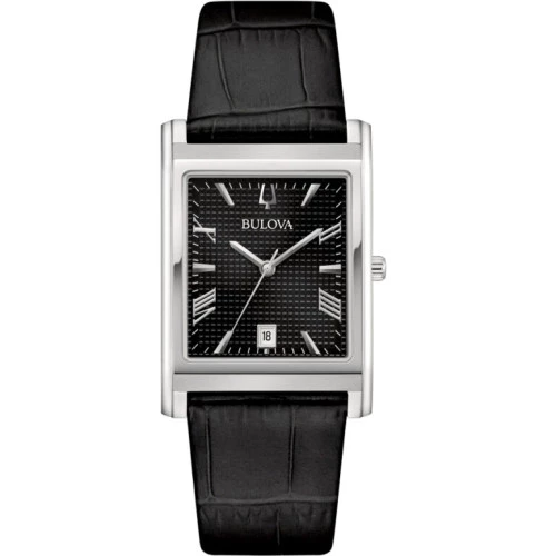 96B445 Reloj Bulova Classic Misc cuadrado extraplano para hombre, acero, piel y zafiro, calendario, garantía Bulova.