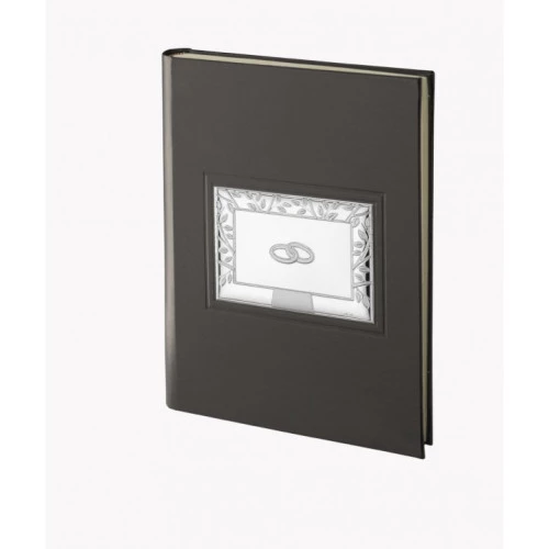 Álbum para boda en polipiel de calidad con placa de plata bilaminada decorado con hojas del árbol de la vida y alianzas de boda de recién casados. Álbum donde guardar las fotografías de ese día tan importante. El álbum trae 30 páginas. Entre hojas papel fino transparente de estraza para el cuidado de sus fotografías. Posibilidad de grabarlo personalizarlo. Medida del álbum 24x30cm.