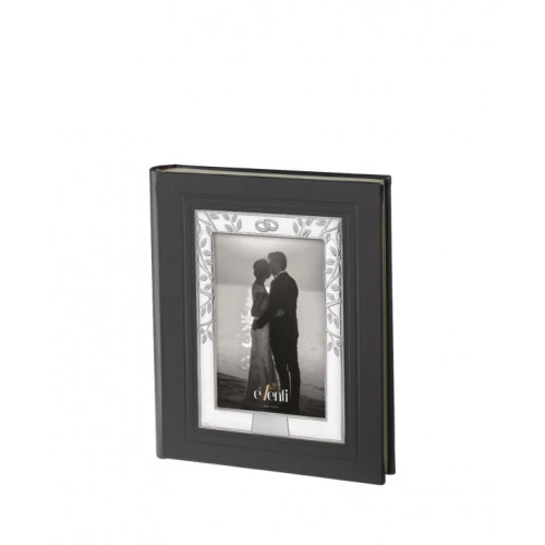 Álbum para boda en polipiel de calidad con marco donde poner fotografía más importante del día tan señalado, bilaminado decorado con alianzas de boda de recién casados y ramas del árbol de la vida. Álbum conmemorativo donde guardar las fotografías de ese día tan señalado. El álbum trae 30 páginas. Entre hojas papel fino transparente de estraza para el cuidado de sus fotografías. Fotografía del frontal de 13x18 cm y 2 fotografías de 13x18 cm por hoja o una grande. Posibilidad de personalizarlo, grabarlo. grabación incluida en el precio. Medida del álbum 24x30cm.
