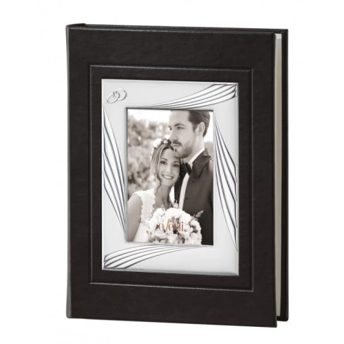 Álbum para boda con marco para fotografía con decorado con ondas en portada con alianzas de boda, álbum en marrón 24x30 cm.