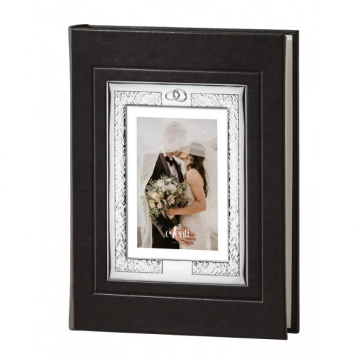 Álbum para boda conmemorativo con marco para fotografía exterior con estampado y alianzas de boda, álbum en marrón 24x30 cm.