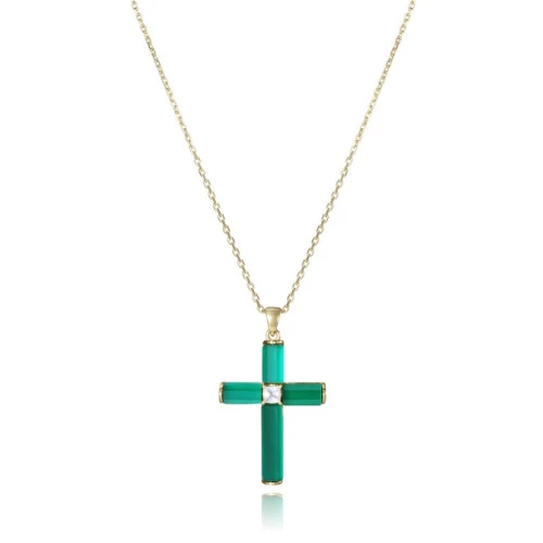 Viceroy collar 2302C100-42 colección Elegant para mujer en plata de ley 925 milésimas bañado en oro con cruz con piedras a´gatas verdes y topacio blanco en el centro. Cierre mosquetón con trozo de cadena, para diferente medida 42,3 + 2 cm. Estuche y garantía Viceroy