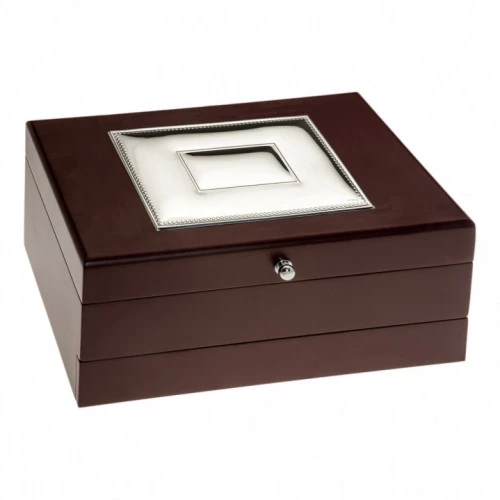 Caja joyero relojero para el cuidado de sus joyas con chapa plata bilaminada, con dos cajones y tirador con tapa 27X16X12 cm