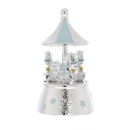 Carrousel musical caballos plateados azul 10x17