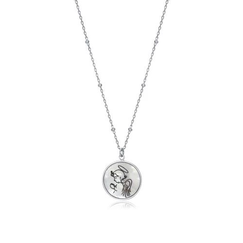 Viceroy colgante 13020c000-90 colección Swett cadena en plata de ley 925 con bolitas y colgante tipo medalla con ángel rezando grabado en madreperla. Medida 42 cm + 3 cm. Collar con cierre tipo mosquetón de seguridad Viceroy. Trae estuche y garantía Viceroy