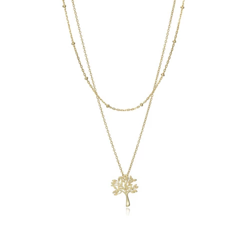 Collar con colgante árbol de la vida Viceroy 13010c100-00 para mujer con doble cadena en plata baño oro, garantía y estuche Viceroy