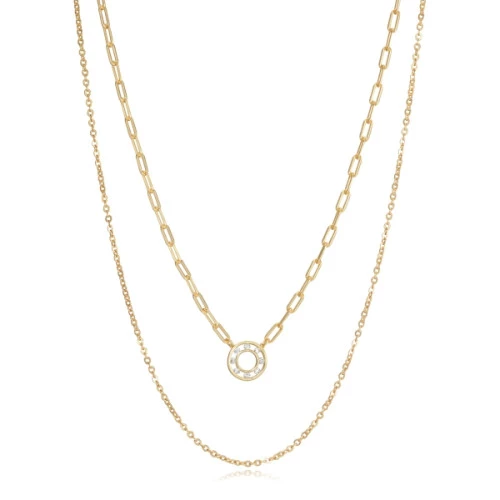 Viceroy collar 13037c100-36 colección Elegant para mujer en plata bañada en oro, dos cadenas una eslabones sencillos largos y otra con eslabones largos con colgante redondo con circonitas engastadas. Medida 40 + 45 cm + 3 cm. Collar con cierre tipo mosquetón de seguridad Viceroy. Trae estuche y garantía Viceroy