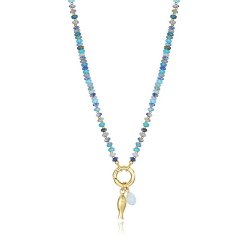Viceroy collar 14152C01019 colección Chic para mujer en acero con ip dorado con piedras de colores naturales sodalita, labradorita y jade teñido, y colgante anilla redonda con pez dorado. Cierre mosquetón con trozo de cadena, para diferente medida 42,3 + 2 cm. Trae estuche y garantía Viceroy