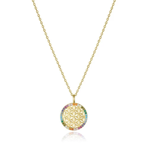 Viceroy collar 15123C100-39 colección Elegant para mujer en plata 925 milésimas con baño de oro, cadena con colgante redondo calado con circonitas de colores al rededor. Medida 42 cm + 3 cm. Collar con cierre tipo mosquetón de seguridad Viceroy. Estuche y garantía Viceroy
