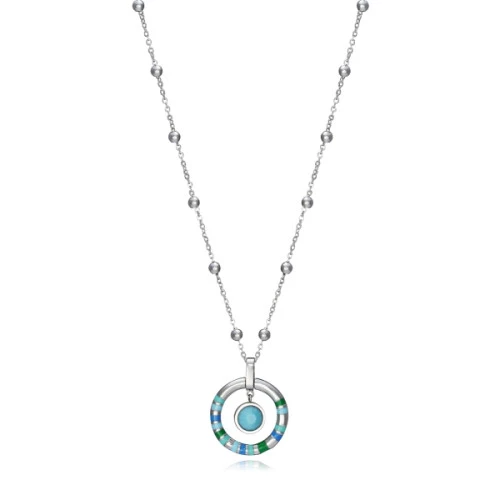 Viceroy collar 15133c01013 colección Chic para mujer en acero, cadena con bolitas y colgante con anilla redonda con colgante dentro redondo en esmaltes de colores azules. Medida 42 cm + 3 cm. Collar con cierre tipo mosquetón de seguridad Viceroy. Trae estuche y garantía Viceroy