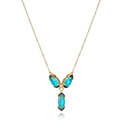 Collar Viceroy 2304C100-52 para mujer en plata baño de oro con colgante tres piedras con forma de color verde, garantía y estuche Viceroy