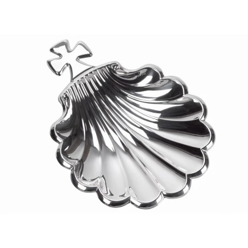 Concha bautismal cruz en plata con cruz 17x13 cm