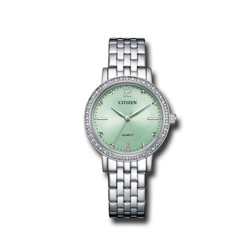 EL3100-55X Reloj Citizen cuarzo pila para mujer en acero con esfera verde, estuche y garantía Citizen