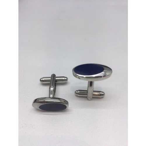Gemelos con forma ovalados rodinados con esmalte azul colección de joyas fashion, medida 20x10 milímetros con cierre rígido articulado