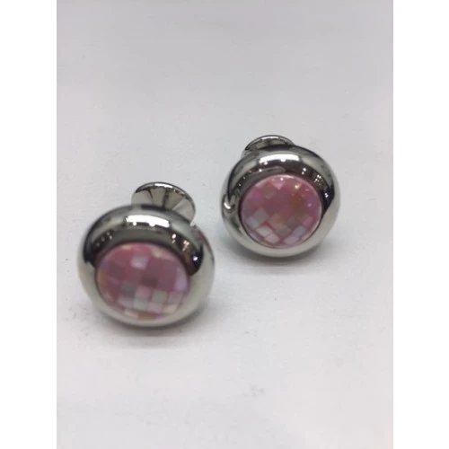 Gemelos redondos rodinados con piedra central en rosa con facetas diferentes tonos colección de joyas fashion, medida 19 milímetros con cierre rígido