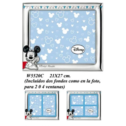 Marco infantil de Disney de Mickey Mouse con medidas de 21x27 cm bilaminado fotografía trae dos fondos para dos o cuatro ventanas y lacada no se pone fea