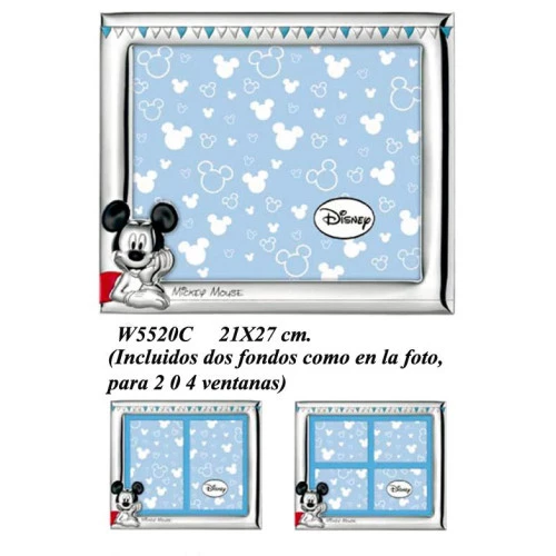 Marco infantil de Disney de Mickey Mouse con medidas de 21x27 cm bilaminado fotografía trae dos fondos para dos o cuatro ventanas y lacada no se pone fea