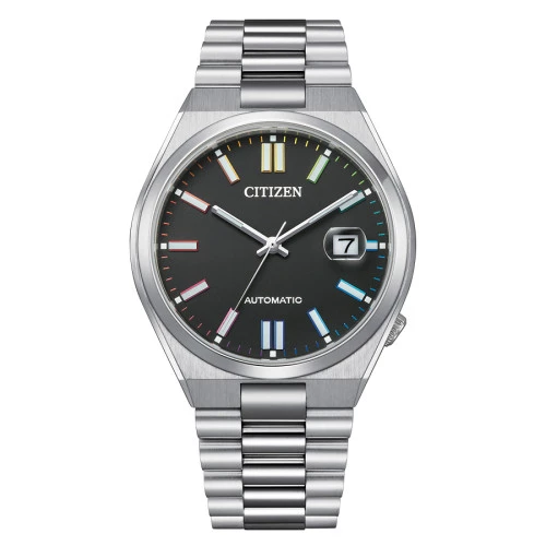 NJ0151-53E – Reloj Tsuyosa de Citizen automático para hombre en acero, esfera negra índices colorful, cristal zafiro, 8210, garantía Citizen