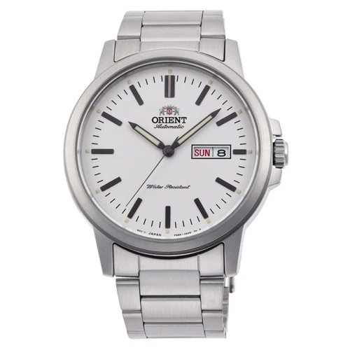 Orient reloj automático ra-aa0c03s19b para hombre en acero caja y brazalete, esfera blanca doble calendario, garantía Orient