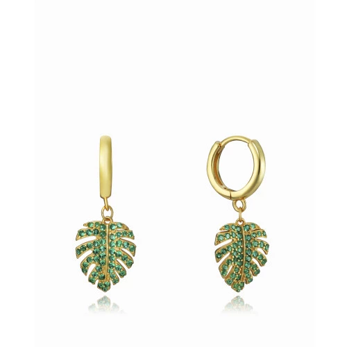 Pendientes criolla Viceroy 13043e100-32 en plata bañado en oro con hojas con piedras verdes que cuelgan. Estuche y garantía Viceroy.
