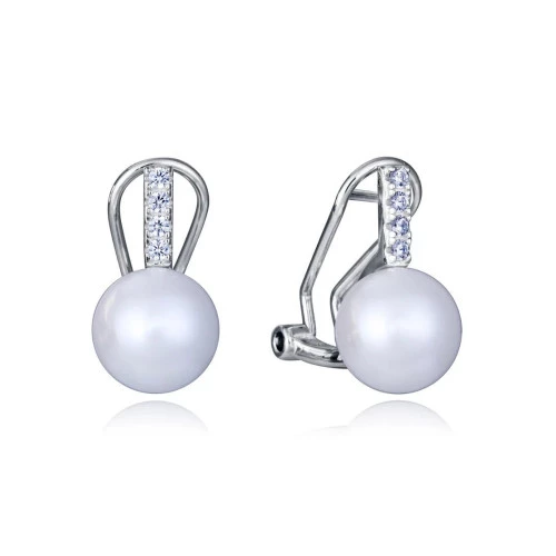 Pendientes Viceroy en plata con baño de rodio perla sintética y circonitas en barra con perla de fantasía con medida de 8 milímetros total 16 milímetros. Tipo tu y yo.