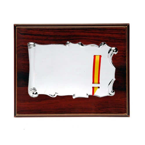 Placa de alpaca con acabado en madera 29x23 cm exterior 20x14 cm la placa de alapaca, conmemoraciones, eventos, homenajes bandera de España.