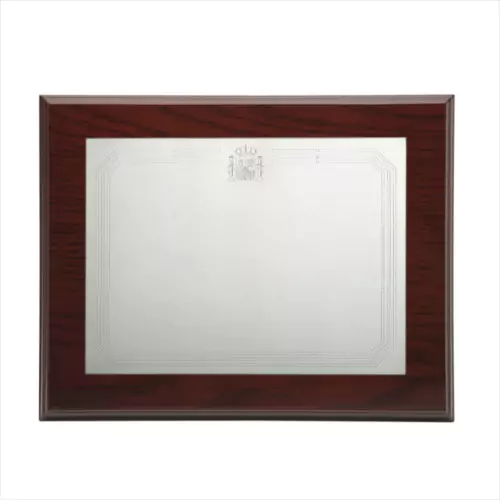 Placa de plata y lacada la con escudo constitucional España, parte trasera acabado en madera, alta calidad