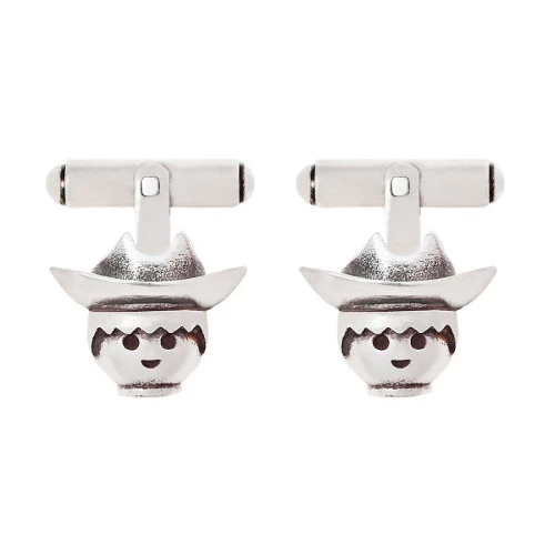 Gemelos de click Cowboy cabeza con sombrero de Playmobil chico recuerda la niñez indios y vaqueros