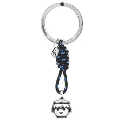 Llavero de Playmobil bañado en plata cabeza de click chico con cordón en azul