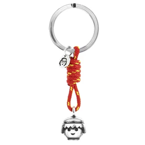 Llavero de Playmobil bañado en plata 7001k0010 cabeza de click chica con cordón en rojo