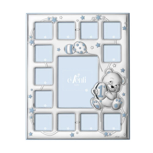 Marco infantil portafotos de los doce meses en rosa o celeste con medidas de 27x33 cm fotografía y lacado no se pone feo.
