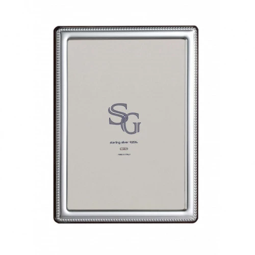 Porta foto marco de plata estrecho para fotografía de 10X15 centímetros plata 925 ley. Marco elegante perlado en plata de 925 lacada no necesita limpiar, no se pone fea. En la caja trae espejo incluido.