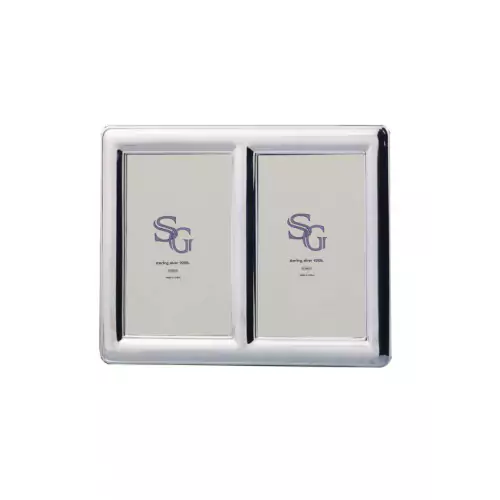 Porta foto marco de plata doble liso para dos fotografías de 6x9 centímetros plata 925 ley. Marco elegante liso con volumen almendra redondeado con bisel interno y externo del marco en plata de 925 lacada no necesita limpiar, no se pone fea. En la caja trae espejo incluido.