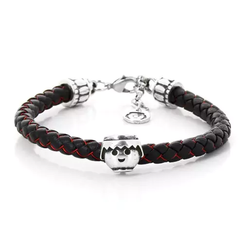 Pulsera joyas playmobil click negro rojo cuero trenzada lee