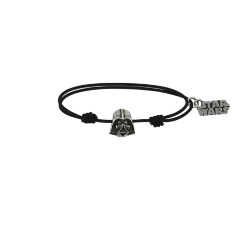 Pulsera de la cabeza de Darth Vader de Star Wars bañado en plata 15 micras sw1002b0310, con nylon negro de 1 milímetro de grueso con nudos corredizos, dos medida de pulsera S o L