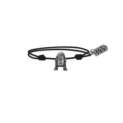 Pulsera de R2D2 de Star Wars bañado en plata 15 micras sw1004b0310, pieza de 5 milímetros de ancho con nylon negro de 1 milímetro de grueso con nudos corredizos, dos medida de pulsera S o L