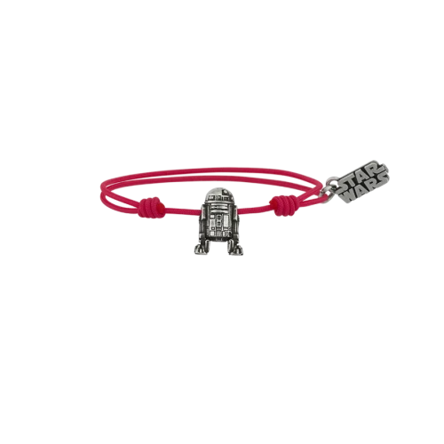 Pulsera de R2D2 de Star Wars bañado en plata 15 micras sw1004b0317, pieza de 5 milímetros de ancho con nylon rosa de 1 milímetro de grueso con nudos corredizos, dos medida de pulsera S o L