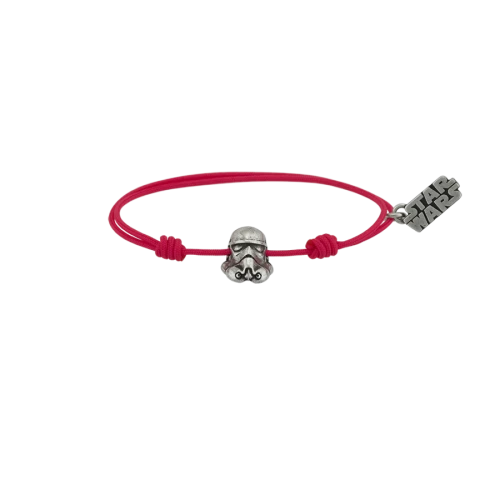 Pulsera de la cabeza de Tropeer de Star Wars bañado en plata 15 micras sw1001b0317 con nylon rosa de 1 milímetro de grueso con nudos corredizos, dos medida de pulsera S o L