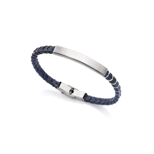 Pulsera de Viceroy para hombre fina 1385p01013 colección Air en cuero trenzado azul y chapa lisa donde se puede grabar. Trae cierre de solapa de seguridad fácil de ajustar, medida de 21,5 cm. Estuche y garantía Viceroy.
