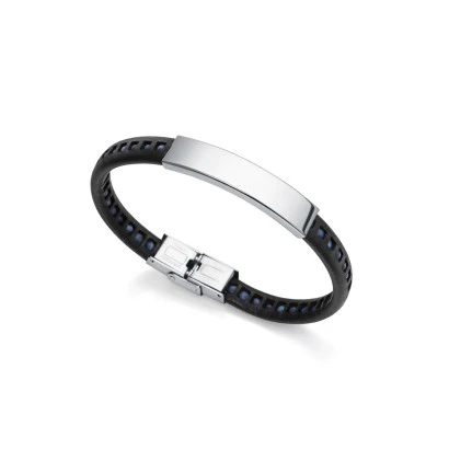 Pulsera de Viceroy para hombre 14004P01010 en piel negra y piedras soladita azules con chapa acero, garantía Viceroy