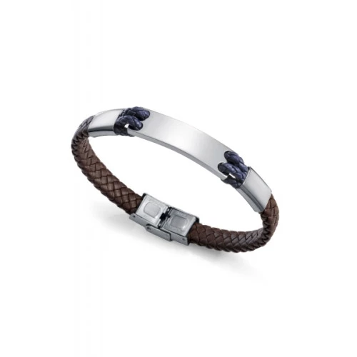 Pulsera Viceroy para hombre 75080p01011 en cuero marrón trenzado con tres chapas acero una central grande, garantía y estuche Viceroy