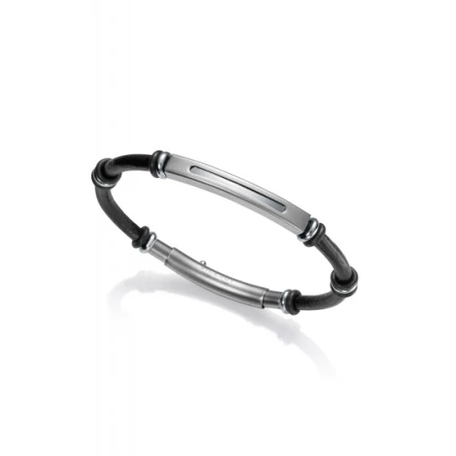 Pulsera de Viceroy para hombre 75192p01010 colección Beat en cuero negro redondo con adornos y chapa en acero satinado con rebaje central, trae cierre en acero ajustable a diferentes medidas, pulsera Viceroy. Medida de 21,5 cm.