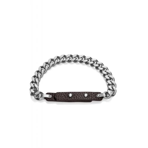 Pulsera de Viceroy para hombre 75194p01000 en acero eslabones grandes con cuero negro ajustable a diferentes medidas, garantía Viceroy