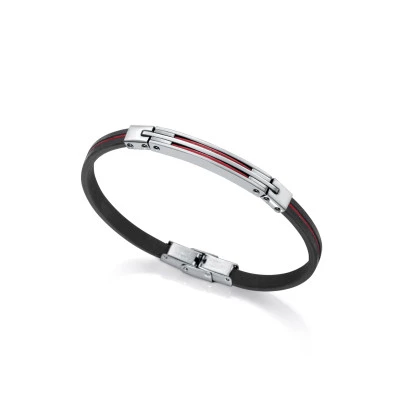 Pulsera Viceroy hombre 75252p01019 en piel negro y rojo acero central con rojo, cierre solapa de seguridad Viceroy