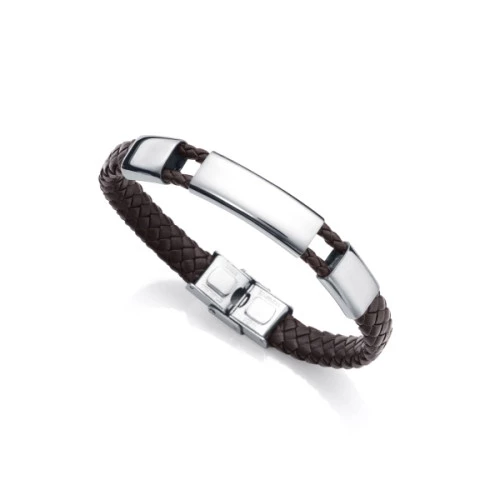 Pulsera Viceroy para hombre 75293p01011 en cuero marrón oscuro trenzado con tres chapas, garantía y estuche Viceroy