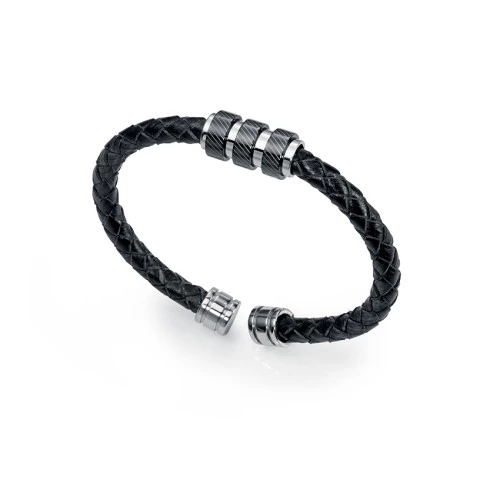 Pulsera de Viceroy para hombre 6350p09010 en cuero en color negro trenzado con adorno en acero con acero ip negro