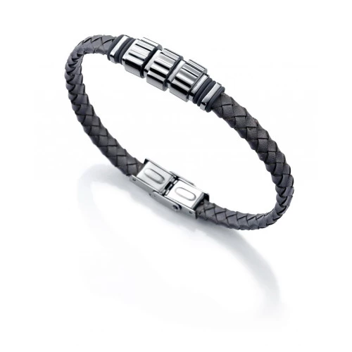 Pulsera de Viceroy fashion 6351p09000 elegante para hombre en cuero gris trenzado y con adornos en acero, garantía y estuche Viceroy