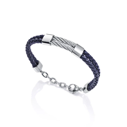 Pulsera de Viceroy para hombre 6448p01013 en cuero azul y acero trenzado, garantía y estuche Viceroy