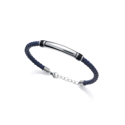 Pulsera de Viceroy para hombre 75098p01013 en cuero azul redondo trenzado y motivo central en redondo tipo esclava con cierre tipo mosquetón de seguridad con anillas para diferentes medidas, garantía y estuche Viceroy