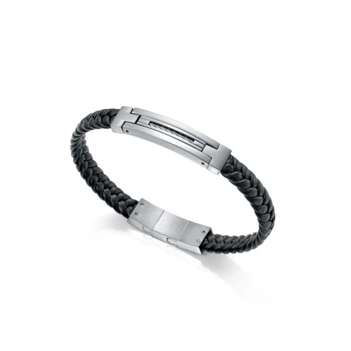 Pulsera de Viceroy para hombre 75155p01010 colección Magnum en cuero negro trenzado con motivo central en acero, con cierre enganche de seguridad Viceroy.